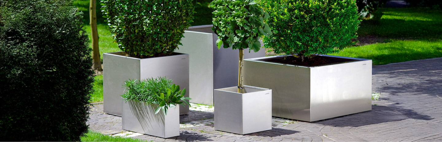 Unsere exklusiven Pflanzgefäße, Hochbeete und Vasen aus Edelstahl bieten Ihnen vielfältige Möglichkeiten, Ihre Pflanzen stilvoll zu präsentieren. Ob im Garten, auf der Terrasse oder im Innenbereich – diese hochwertigen Objekte fügen sich harmonisch in jedes Ambiente ein und setzen Ihre Pflanzen gekonnt in Szene.